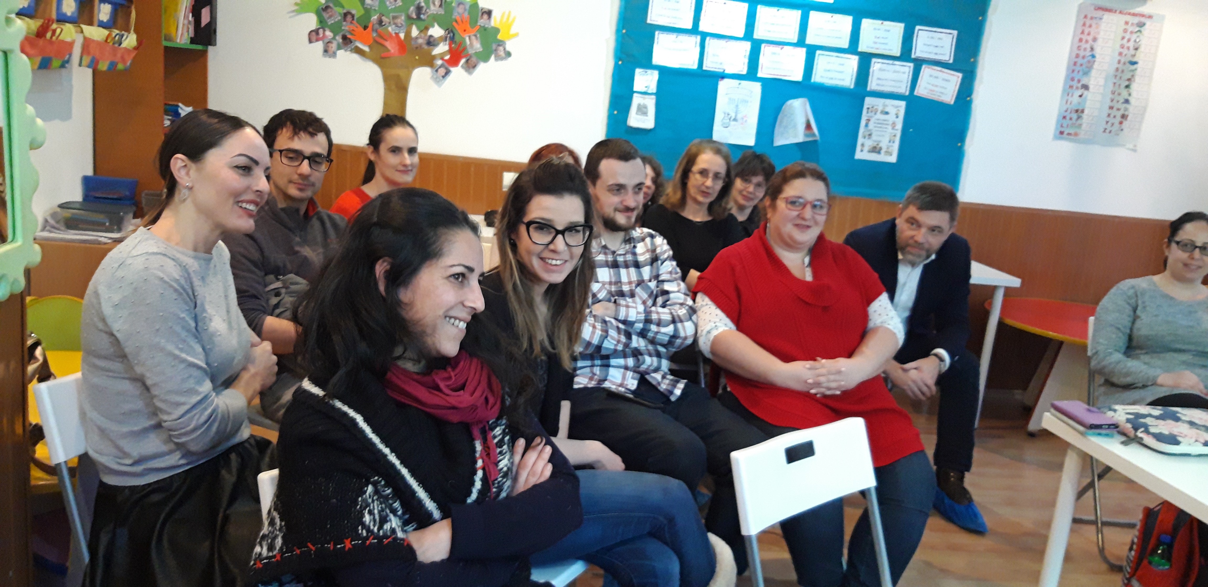 Later in the afternoon, we welcomed our colleagues from Bulgaria and Hungary. They toured the school and then joined the parents in the meeting room for our parent workshop introducing the merits of the Reggio Approach. We had a great parent response and some of them even stayed late to talk with us more about the possibility of changes coming to their children’s school. We concluded the day at a dinner with our European partner educators.