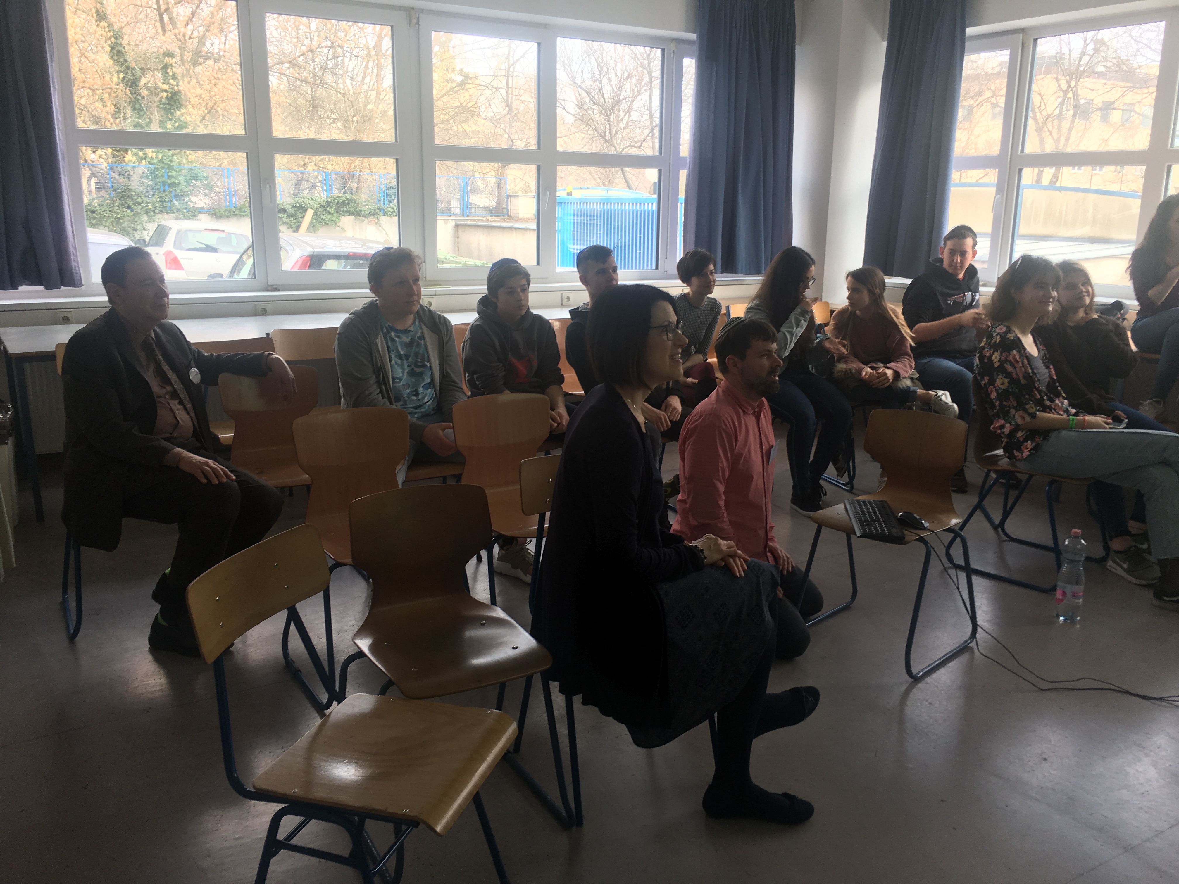 After waiting so long our program with BT started today. Right after we arrived at school in the morning we were greeted by Zsolt and Mrs. Halaine Steinberg form Beth Tfiloh School.