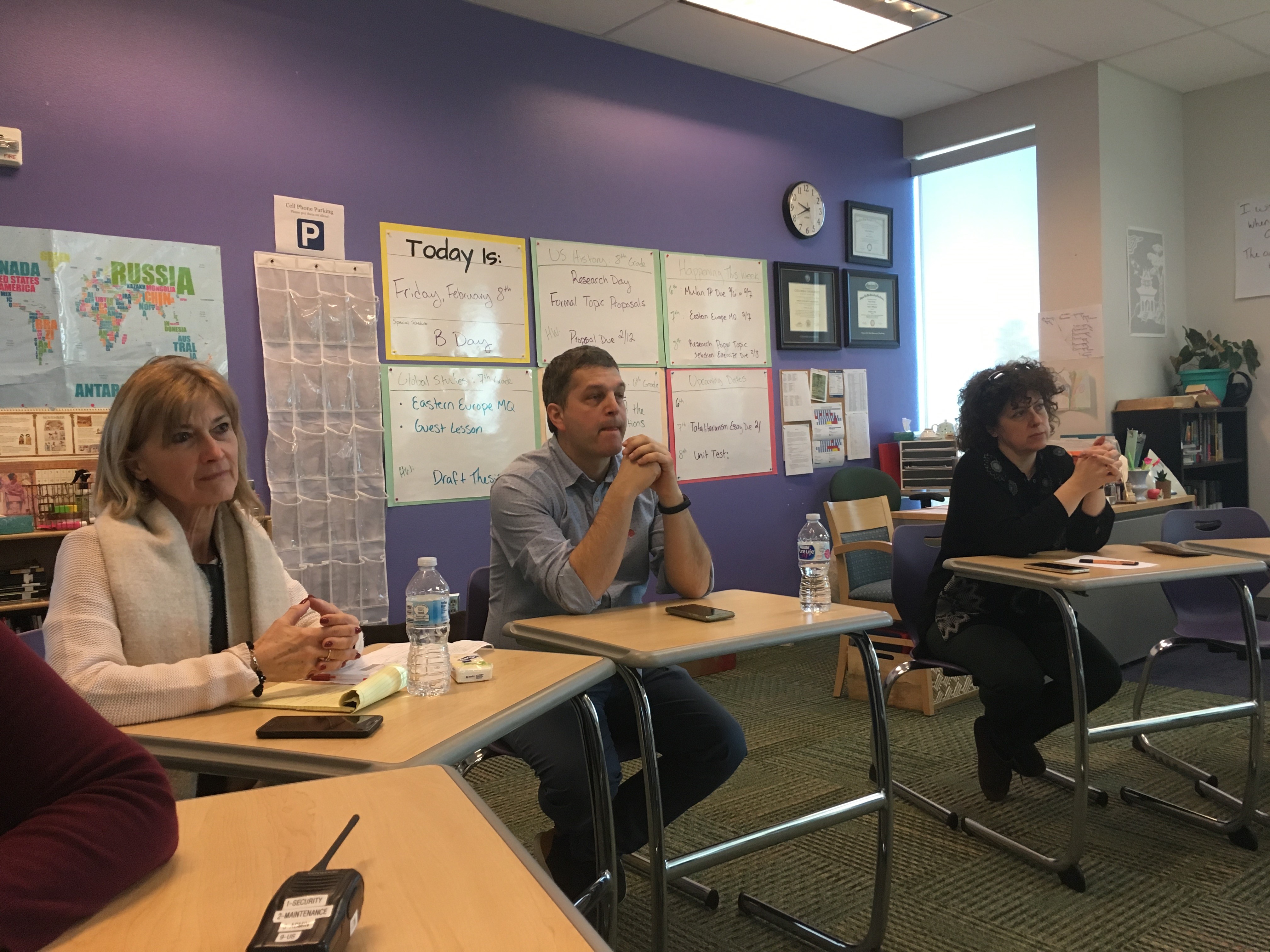 Our special week at the Adelson Campus has been wonderful. In the last few days, I have seen the benefits of providing different elective classes to students. Observing these middle-school lessons built into the morning schedule was a real eye-opener. Kids can get involved in art, coding, theatre or any other course of their choice during core school time, instead of staying in for long afternoon hours. I personally loved the 7th and 8th grade humanities projects that our American colleagues presented – I think we would definitely borrow some of these great ideas. In project-based learning, skills are being developed and one has to be brave enough to leave certain things behind (e.g. chronology in history or science). We also saw that some of our problems are often the same: it is not easy to involve a Judaics teacher in these projects in ea